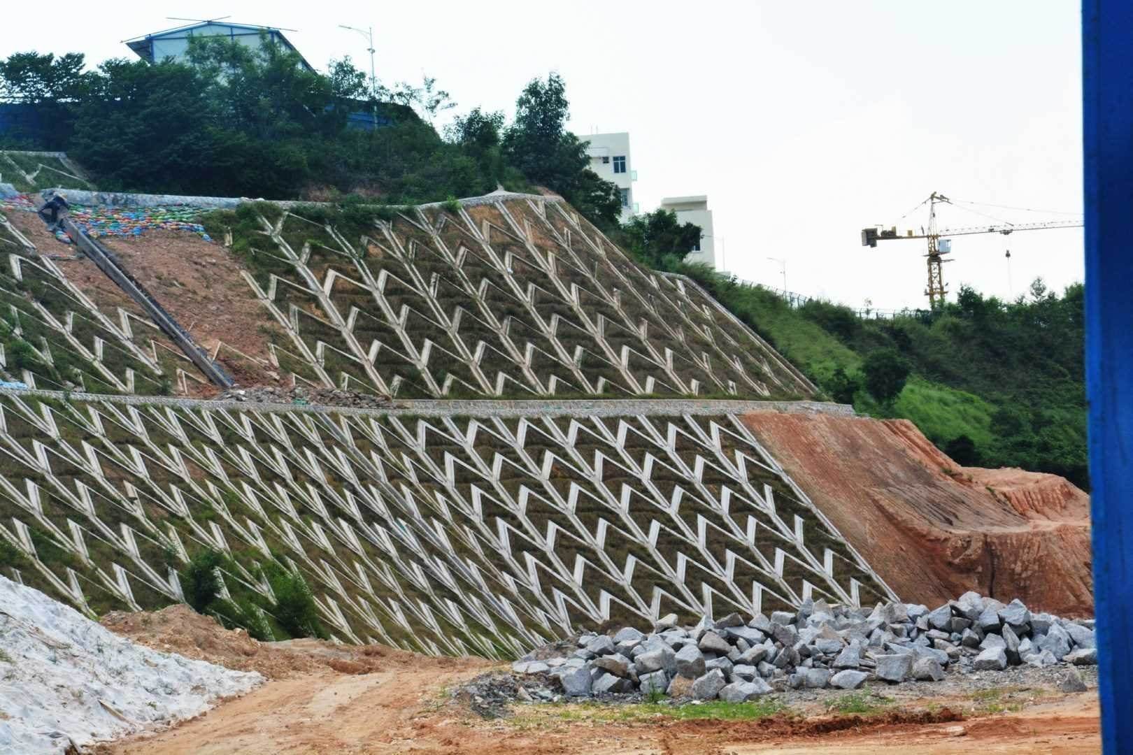 邊坡坡度50-70度,邊坡總長約360m,坡高12-25m,工程包含錨桿支護噴播植草等