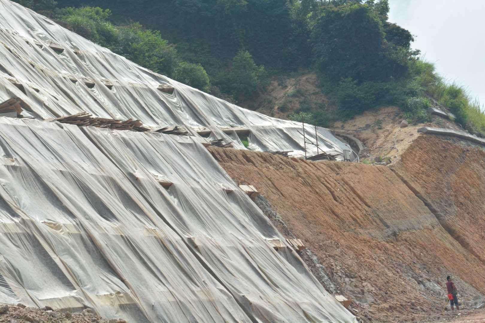 本工程特殊路基采用強夯,強夯面積為2301m2,路基防護采用擋墻,骨架護坡(護坡高度H>17.5m),噴播植草,截水溝等